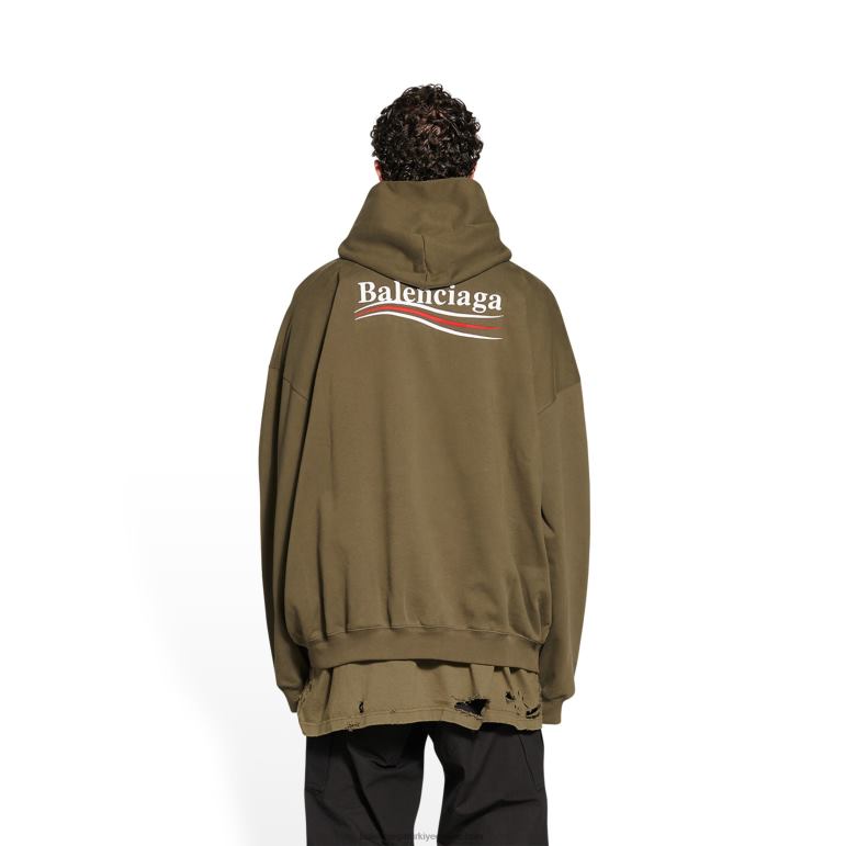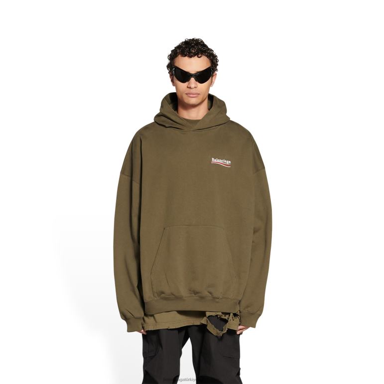kaki DBJ0F1008 erkekler politik kampanya hoodie geniş kesim Balenciaga